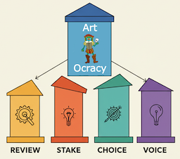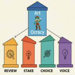 Art-ocracy—a democratic collective where stakeholder votes govern cultural support.